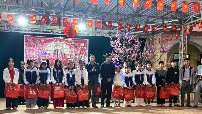 Chương trình trở nên sinh động hơn với các tiết mục văn nghệ đặc sắc do chính các bạn học sinh biểu diễn. Những điệu múa, lời ca mang âm hưởng mùa xuân, hòa quyện cùng sắc màu trang phục dân tộc, đã mang đến niềm vui tươi, phấn khởi, làm rộn ràng không gian ngày xuân nơi mái trường vùng cao.