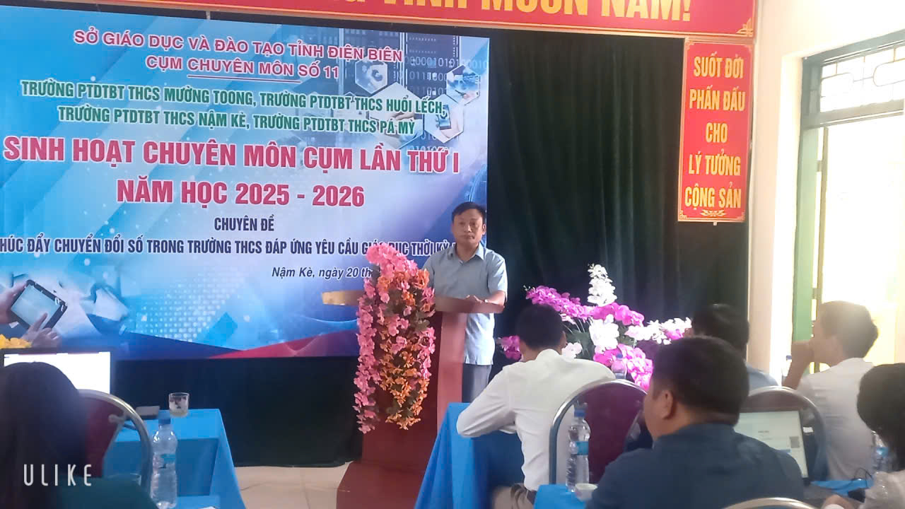 Thực hiện kế hoạch số 2321/SGD&ĐT-SGD TrH, ngày 06/08/2025 của sở giáo dục và đào tạo tỉnh Điện Biên về sinh hoạt chuyên môn cấp THCS năm học 2025-2026. Các trường: Trường PTDTBT THCS Mường Toong, Trường PTDTBT THCS Huổi Lếch, Trường PTDTBT THCS Nậm Kè, Trường PTDTBT THCS Pá Mỳ phối hợp tổ chức chuyên đề sinh hoạt chuyên môn “Thúc đẩy chuyển đổi số trong trường THCS.Mục tiêu nâng cao nhận thức cho cán bộ quản lý, giáo viên về vai trò, ý nghĩa của chuyển đổi số trong Giáo dục.Chia sẻ trao đổi kinh nghiệm ứng dụng công nghệ chuyển đổi số vào quản lí, giảng dạy và kiểm tra đánh giá. Thực hành các công cụ số, phần mềm quản lý, dạy học trực tuyến vào sáng tạo nội dung số góp phần xây dựng môi trường linh hoạt, hiện đại, phù hợp với yêu cầu đổi mới giáo dục trong thời kỳ cách mạng công nghiệp 4.0.