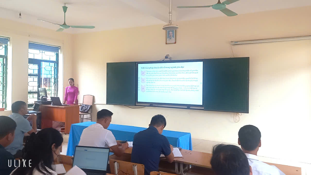 - Nội dung 1: người trình bày ĐC Xa Thị Yến. Chuyên đề: Chuyển đổi số trong trường THCS đáp ứng yêu cầu đổi mới giáo dục trong thời kỳ cách mạng công nghiệp 4.0.