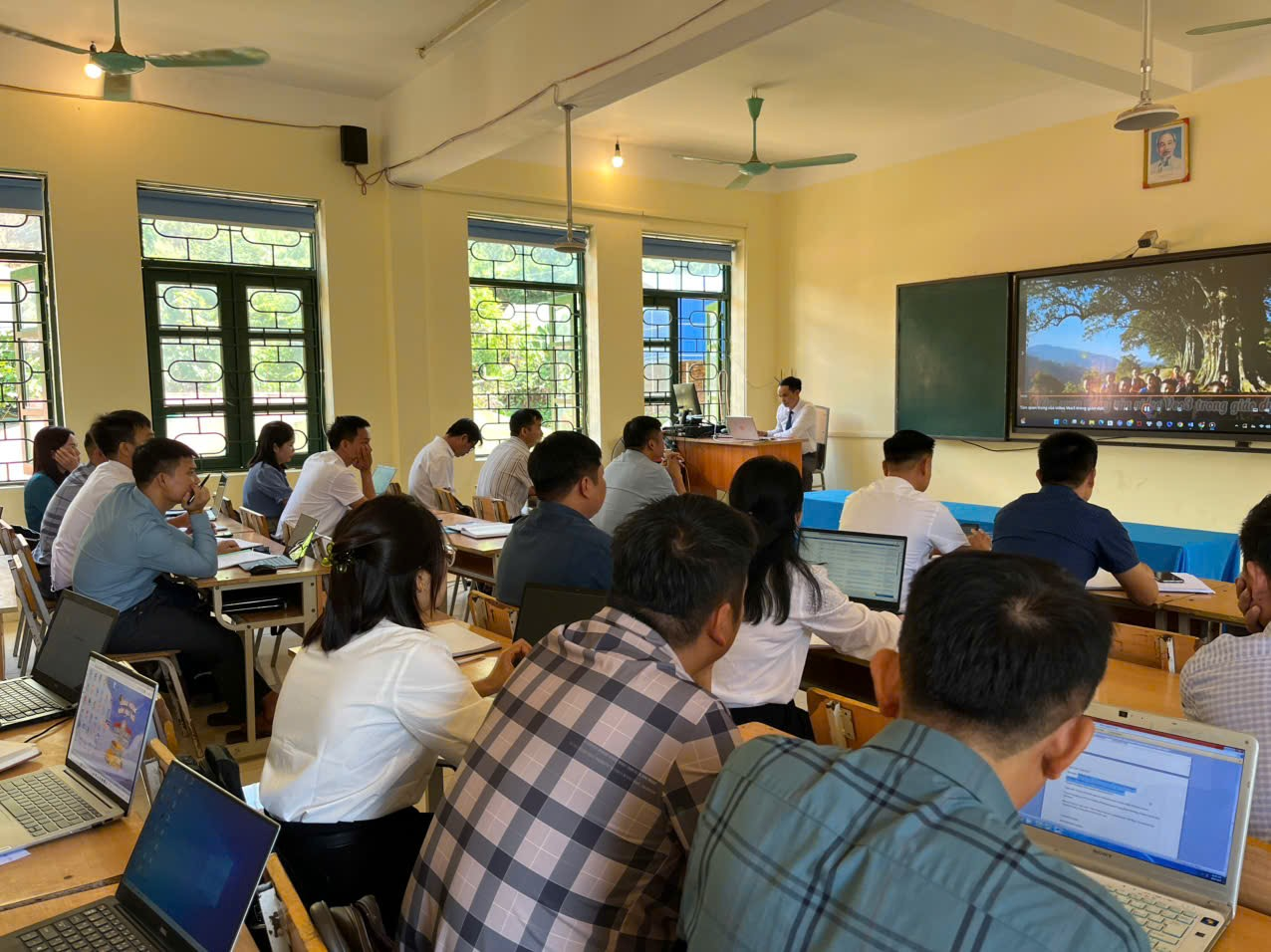 - Nội dung 2: người trình bày ĐC Trần Văn Hà  Chuyên đề: số hóa tài liệu, sử dụng phần mềm quản lý giáo dục vnEdu và sử dụng công cụ canva chuyển đổi bài giảng từ Word sang PowerPoint.